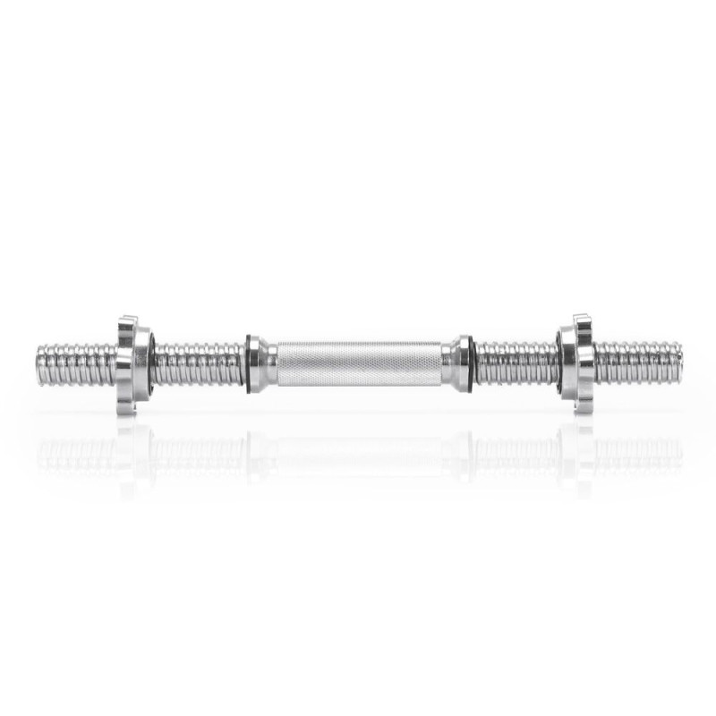 Jednoruční posilovací osa délky 40 cm, vhodná pro kotouče s otvorem 28 mm, ideální pro domácí i klubový trénink. Protiskluzová drážkovaná rukojeť, jistý a bezpečný úchop při cvičení. Kvalitní chromovaná ocel, dlouhá životnost a odolnost proti opotřebení. Vylepšené závitové objímky, pevné zajištění kotoučů. Délka 40 cm, nosnost 80 kg, hmotnost 1,8 kg.