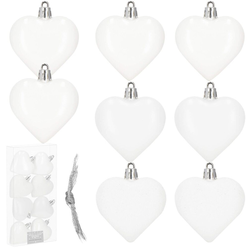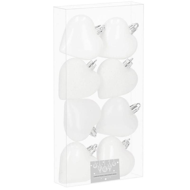 Srdíčka bílá sada 8ks, vánoční ozdoby CA1154