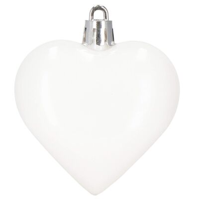 Sada vánočních ozdob ve tvaru srdíček v bílém provedení dodá vaší výzdobě jemný a romantický vzhled. Ideální jako dekorace na vánoční stromeček, sváteční stůl nebo do oken. Vyrobeny z nerozbitného plastového materiálu, vhodné pro vnitřní i venkovní použití. Součástí balení jsou poutka pro zavěšení. Průměr 6 cm, celkem 8 kusů v sadě.