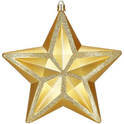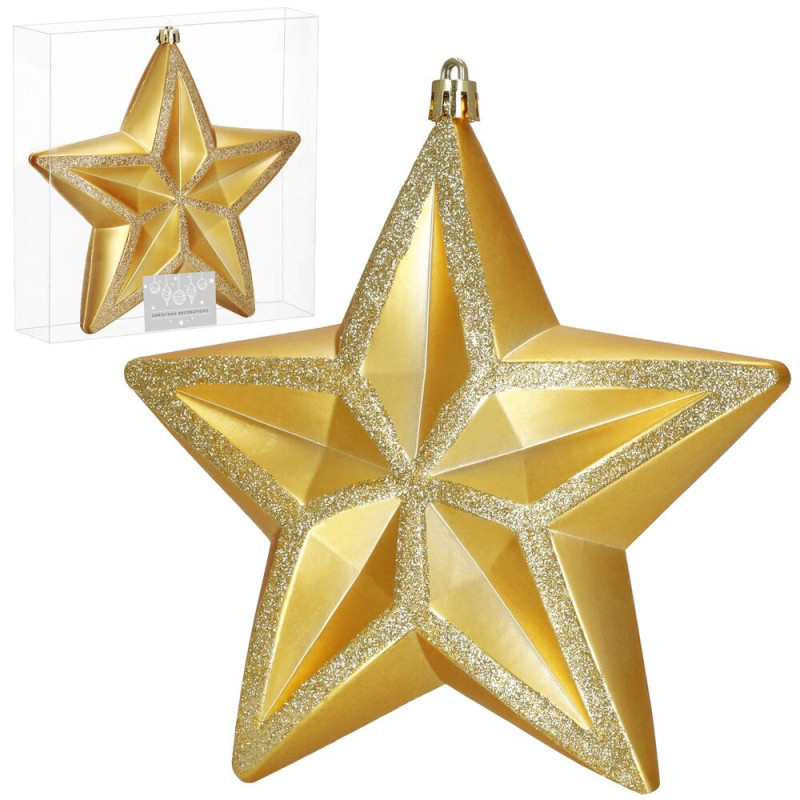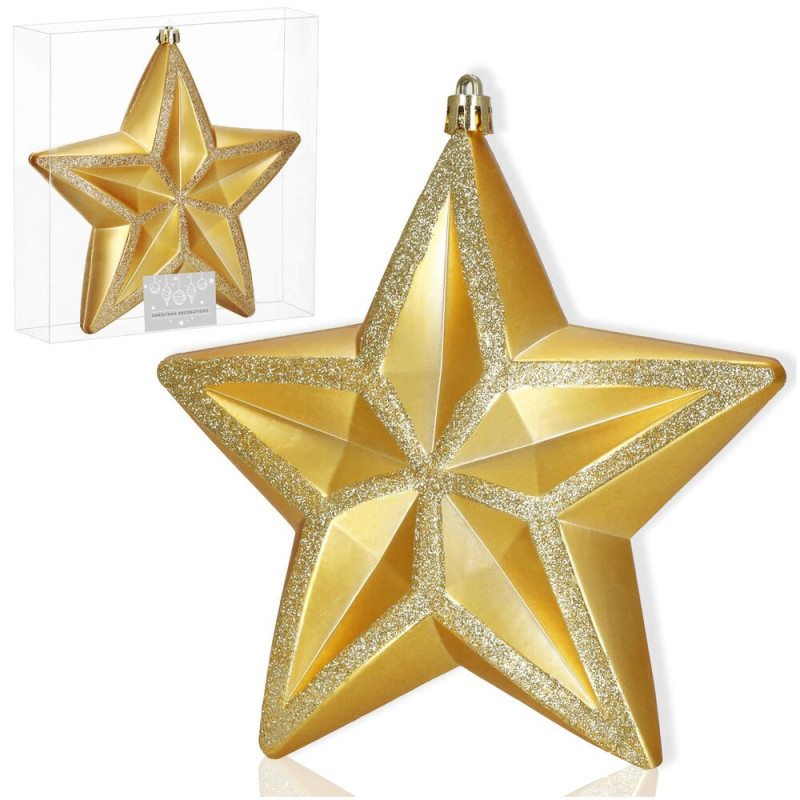 Vánoční hvězda zlatá 16×15 cm je elegantní ozdoba, která dodá vánoční výzdobě luxusní a slavnostní nádech. Kombinace matného a lesklého povrchu vytváří výrazný 3D efekt, díky kterému hvězda krásně vynikne na stromku i v dalších dekoracích. Ozdoba je vyrobena z nerozbitného plastu, takže je lehká, bezpečná a vhodná do každé domácnosti.