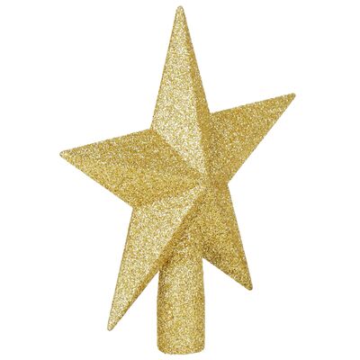Zlatá třpytivá hvězda z lehkého, nerozbitného plastu dodá vánočnímu stromku jemný a elegantní vzhled. Díky otvoru o průměru 1,5 cm se snadno nasazuje na špičku. Originální dekorace v klasickém tvaru hvězdy rozzáří výzdobu svou výškou 19 cm a šířkou 19 cm.