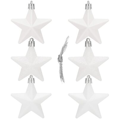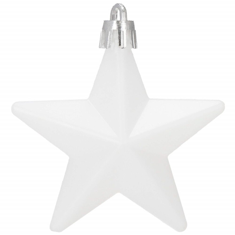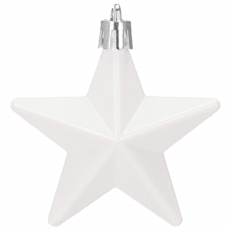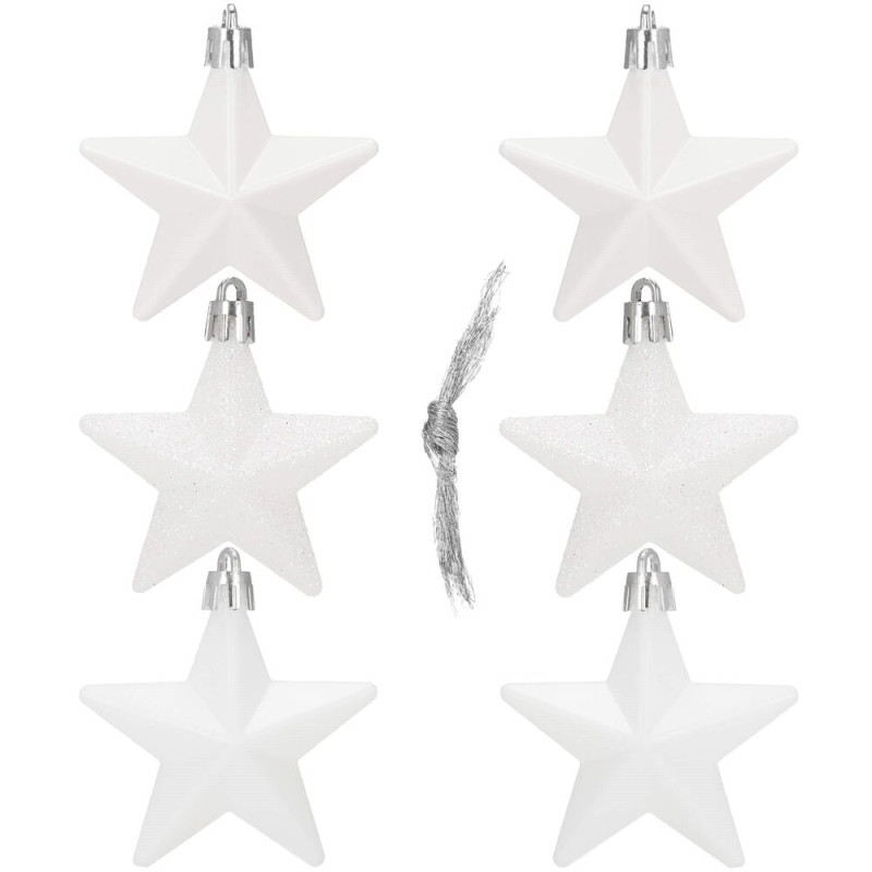 Sada vánočních ozdob ve tvaru hvězd v bílém provedení dodá vaší výzdobě jemný a elegantní vzhled. Ideální jako dekorace na vánoční stromeček, sváteční stůl nebo do oken. Vyrobeny z nerozbitného plastového materiálu, vhodné pro vnitřní i venkovní použití. Součástí balení jsou poutka pro zavěšení. Průměr 6,5 cm, celkem 6 kusů v sadě.