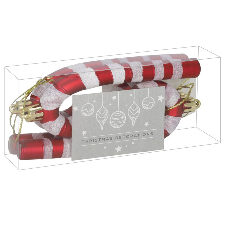 Sada červeno-bílých ozdob ve tvaru lízátek dodá vánočnímu stromku hravý a sladký vzhled. Lehký, nerozbitný plastový materiál zajišťuje snadnou manipulaci i bezpečné zavěšení. Originální dekorace v typickém candy stylu se skvěle hodí na stromeček i do dalších vánočních aranžmá.