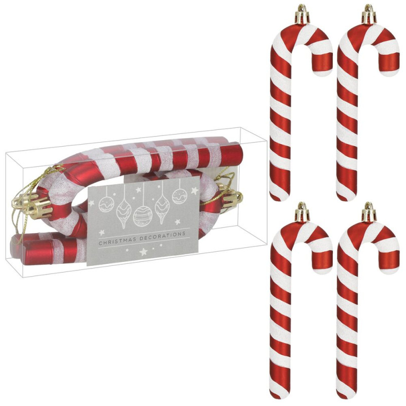 Vánoční ozdoby lízátka červeno-bílé – sada 4 ks jsou hravým a výrazným doplňkem, který dodá vašemu vánočnímu stromku veselý candy styl. Tyto dekorace zaujmou klasickým spirálovým vzorem v červené a bílé barvě, který dokonale zapadne do tradiční i moderní vánoční výzdoby. Díky nerozbitnému plastovému materiálu jsou ozdoby lehké, odolné a vhodné i do domácností s dětmi. Každé lízátko je vybaveno poutkem, což umožňuje snadné zavěšení na stromek nebo jiné dekorativní prvky.