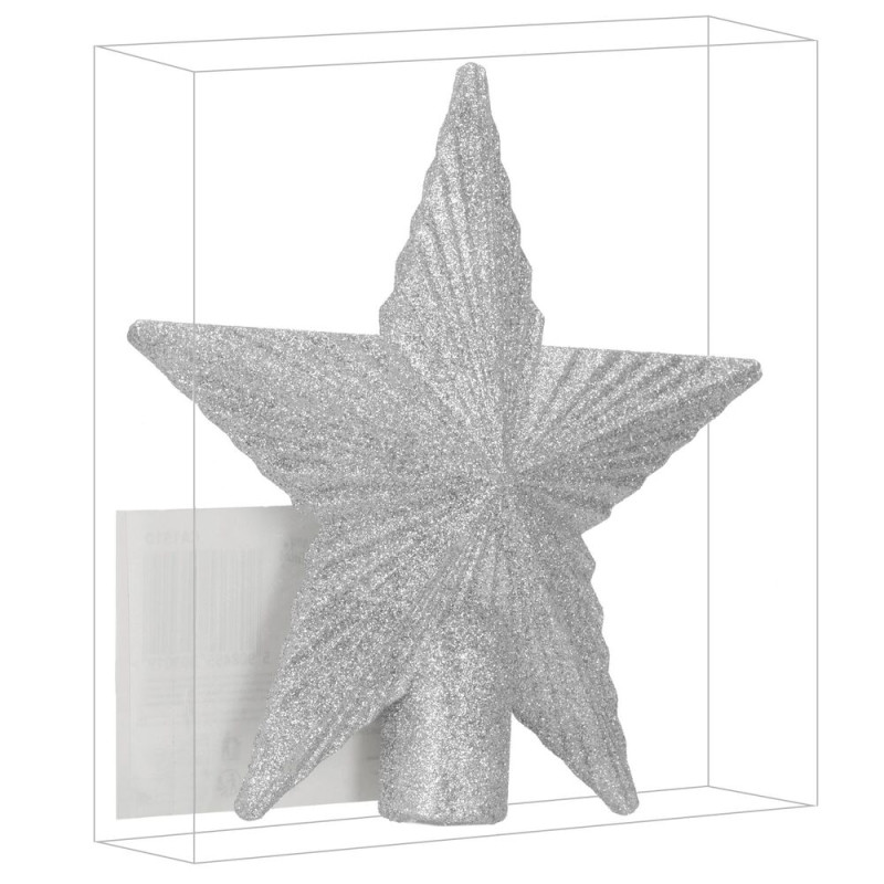 Třpytivá stříbrná hvězda z lehkého, nerozbitného plastu dodá vánočnímu stromku elegantní zimní vzhled. Díky otvoru o průměru 2,7 cm se snadno nasazuje na špičku. Klasický tvar hvězdy působí jako originální dekorace, která na stromku krásně vynikne svou velikostí a jasným stříbrným třpytem.