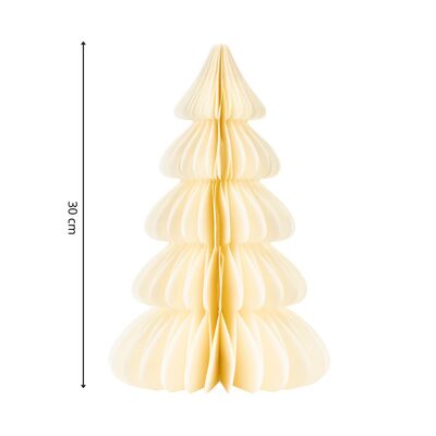 Lehký papírový stromek v jemné bílé barvě je elegantní vánoční dekorací pro každý interiér. Snadno jej umístíte na stůl, polici či okenní parapet, kde vykouzlí hřejivou a sváteční atmosféru. Díky papírovému materiálu je skladný, lehký a ideální pro opakované použití. S výškou 30 cm a krásně tvarovanými patry působí decentně, ale výrazně – skvěle doplní moderní i tradiční aranžmá a vnese do prostoru jemnost a klid.