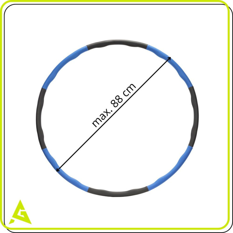 Základní údaje: Značka: Actiget®. Univerzální řada. Materiál: PE, NBR pěna. Barva: šedá, modrá. Počet dílů: 8. Nastavitelný obvod. Skládací hula hoop. Produkt pro vlastní montáž. Hmotnost: 1 kg. Rozměry: Průměr obruče: 3 cm. Tloušťka pěny: 5 mm. Vnitřní průměr se všemi spojenými prvky: 88 cm. Vnitřní průměr se 7 spojenými prvky: 77 cm. Vnitřní průměr se 6 spojenými prvky: 67 cm.