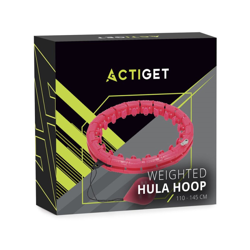Základní informace: Značka: Actiget®. Univerzální řada. Materiál hula hoopu: ABS. Materiál závaží: PP, písek. Barva: červená. Počet dílů: 24. Počet masážních prvků: 24. Nastavitelný obvod pro přizpůsobení vaší postavě. Nastavení délky zatíženého lana. Produkt pro svépomocnou montáž. Nastavitelná hmotnost - možnost přidání nebo odebrání závaží.. Hmotnost závaží: 420 g. Skládací hula hoop. Kuličková ložiska. Hmotnost: 1 kg. Rozměry: Vnitřní průměr po spojení všech prvků: 35 cm. Vnější průměr po spojení všech prvků: 45 cm. Nastavitelný obvod: 55 - 133 cm (min. - max.). Nastavení délky závaží: 1 - 23 cm. Průměr trubky: 4 cm. Hmotnosti: 10,5 x 7 (v. x průměr). Další informace: Produkt je opatřen logem Actiget®.
