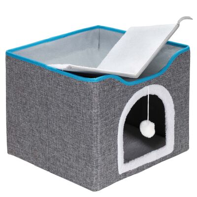Domeček pro kočku s hračkou SPRINGOS PA0241 šedo-bílý