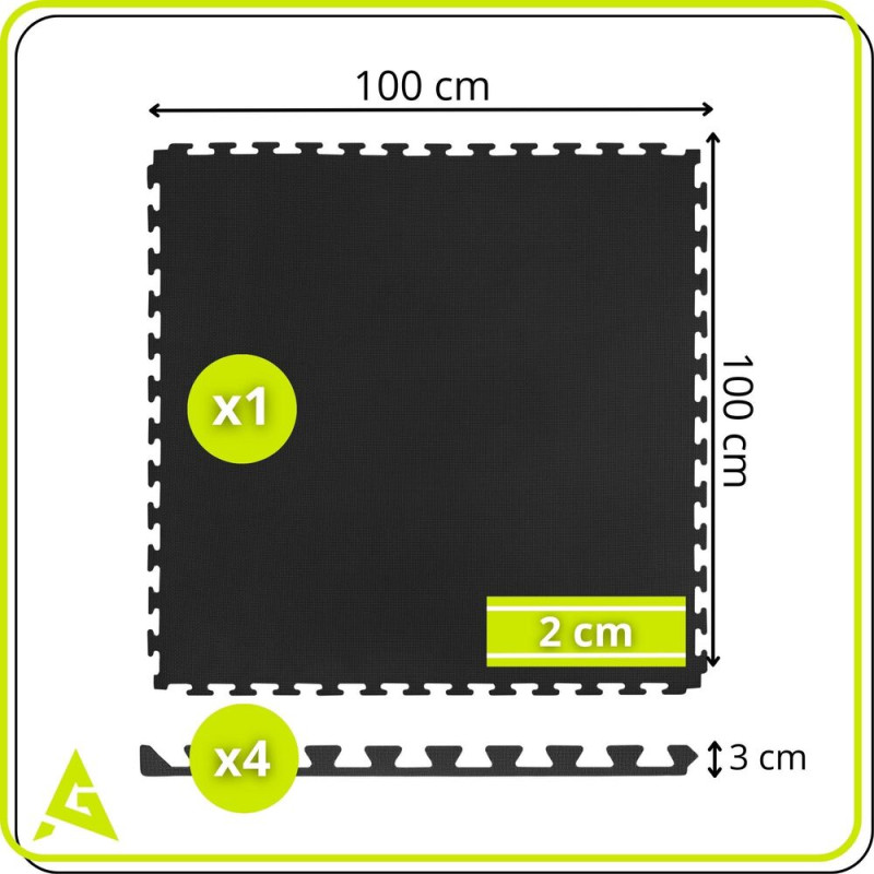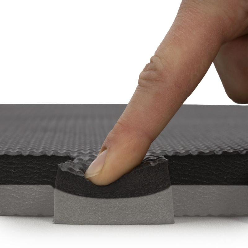 Díky 2 cm silné EVA pěně podložka účinně tlumí nárazy i hluk. Poskytuje spolehlivou ochranu podlahy při cvičení s činkami a je vhodná pro lehké i intenzivní tréninky. Materiál je odolný, má certifikát CE a velmi snadno se čistí, což z ní dělá ideální volbu pro každodenní používání. Pro vytvoření větší plochy lze jednoduše kombinovat více kusů.