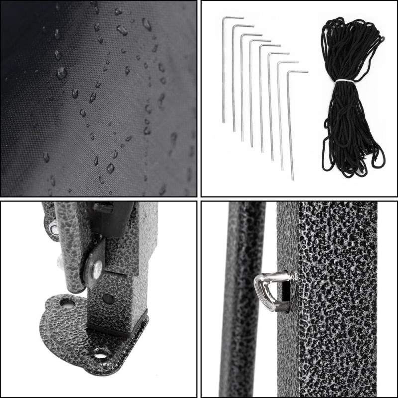 Základní informace: Značka: Springos®. Konstrukční materiál: kov, pozink. Materiál potahu: 100% polyethylenová fólie. Materiál síťoviny...