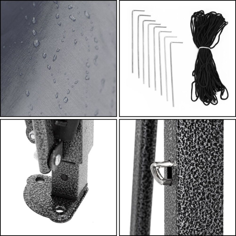 Základní informace: Značka: Springos®. Konstrukční materiál: kov, pozink. Materiál potahu: 100% polyethylenová fólie. Materiál síťoviny...
