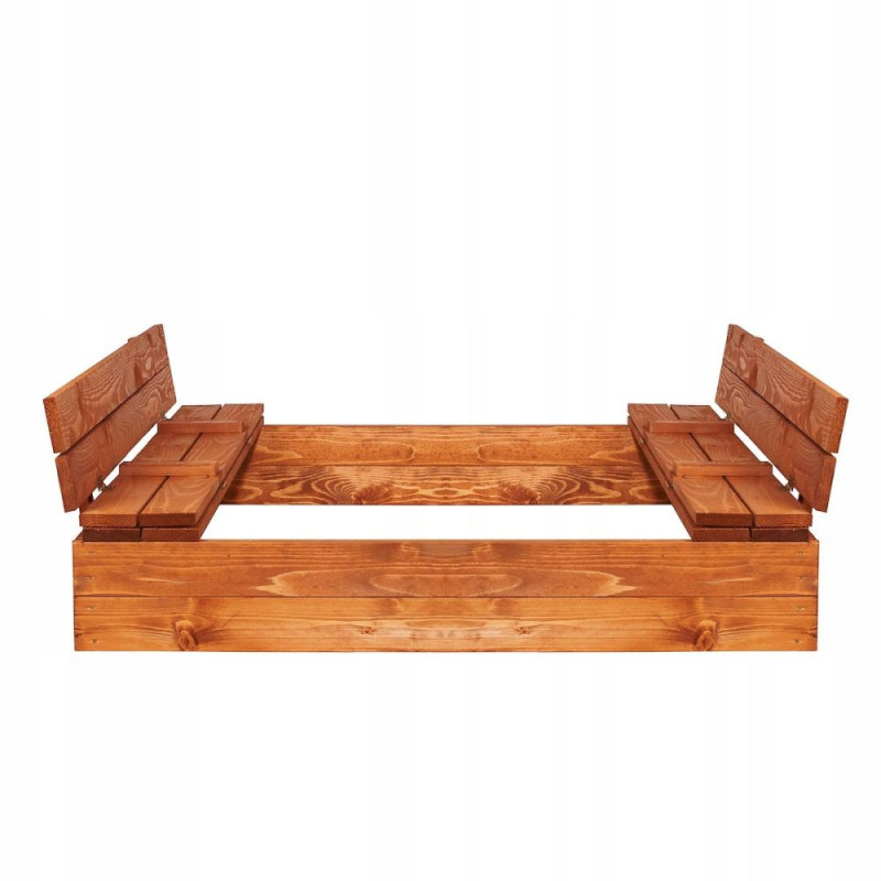 Dřevěné pískoviště s rozměry 150x150 cm s praktickým příslušenstvím. Skvělá zábava i pro ty nejmenší děti. Pískoviště je vybaveno krytem, ze kterého lze vytvořit jednu nebo hned dvě lavičky. Bezpečná, robustní konstrukce. Proti povětrnostním vlivům a dřevokaznému hmyzu ošetřeno hloubkovou lazurou v barvě teak. V ceně podložka a krycí plachta.