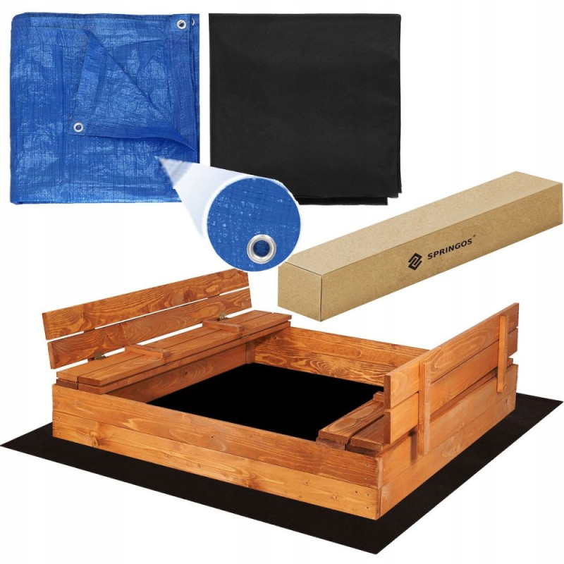 Dětské pískoviště s krytem 150x150 cm SPRINGOS SARA 150IMS + plachta a podložka