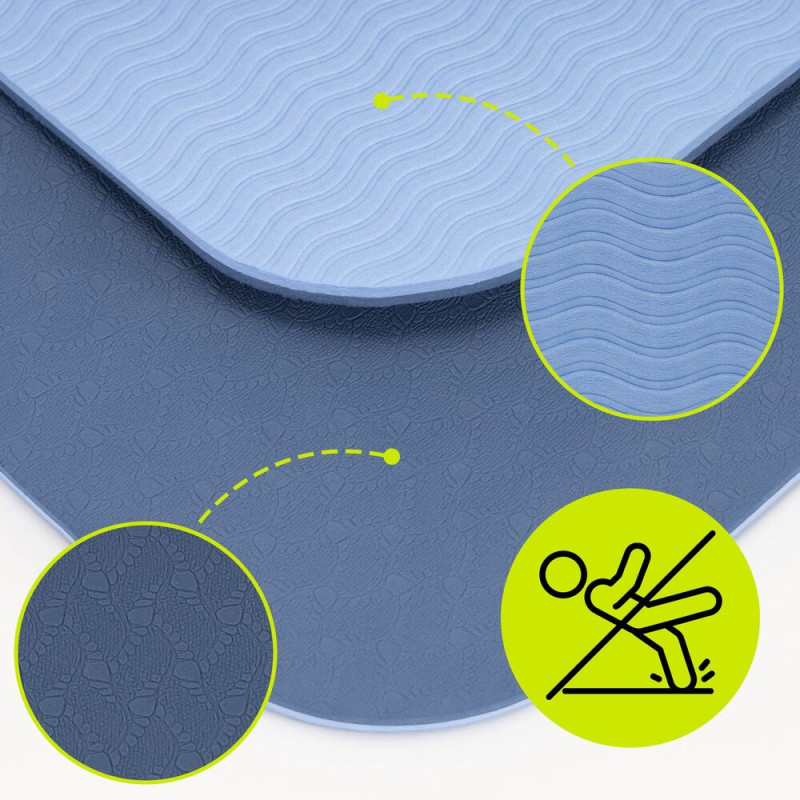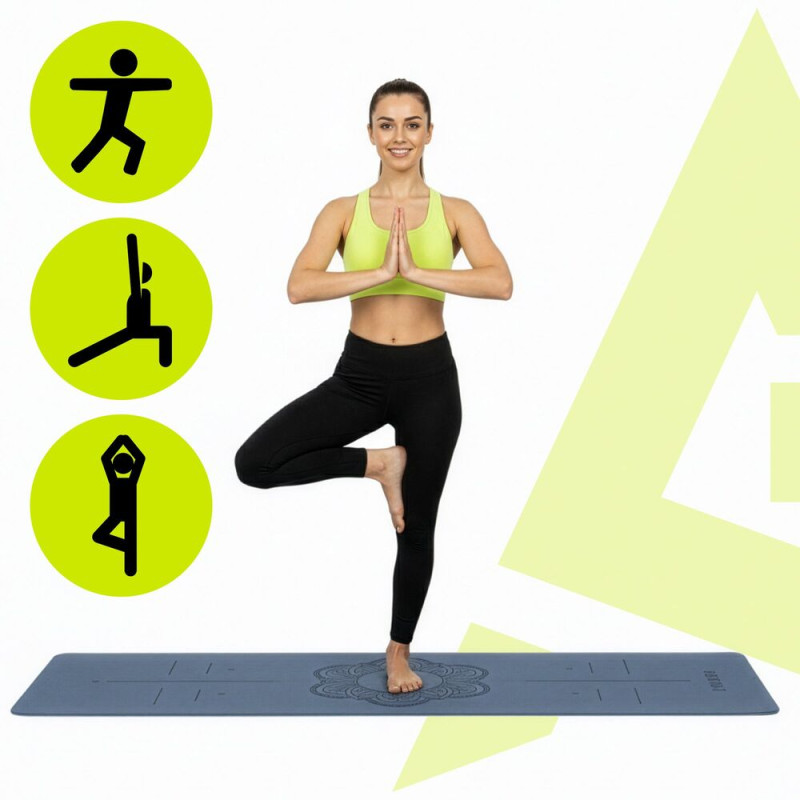 Součástí designu je přehledné vyznačení pro jednotlivé cviky a správné pozice, které pomáhá s orientací při cvičení a podporuje správnou techniku. Kvalitní TPE materiál je příjemný na dotek, voděodolný a snadno udržovatelný, vhodný pro použití doma i venku. Díky nízké hmotnosti, skladnému provedení a popruhu na přenášení v balení je podložka ideální volbou pro každodenní trénink i cvičení na cestách.