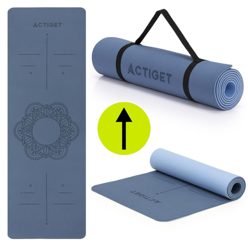 Podložka na cvičení Podložka na cvičení 183x61 cm 6mm TPE ACTIGET ACT0021 modrá kombinuje pohodlí, stabilitu a moderní design. Tloušťka 6 mm zajišťuje optimální tlumení při cvičení a zároveň pevnou oporu pro správné držení těla. Povrch doplňuje dekorativní ornament, který dodává podložce elegantní vzhled a zpříjemňuje každý trénink. Protiskluzové provedení podporuje stabilitu při józe, pilates i kondičním cvičení.