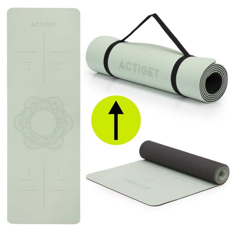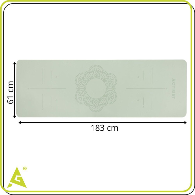 Podložka na cvičení Podložka na cvičení 183x61 cm 6mm TPE ACTIGET ACT0022 mátová kombinuje pohodlí, stabilitu a moderní design. Tloušťka 6 mm zajišťuje optimální tlumení při cvičení a zároveň pevnou oporu pro správné držení těla. Povrch doplňuje dekorativní ornament, který dodává podložce elegantní vzhled a zpříjemňuje každý trénink. Protiskluzové provedení podporuje stabilitu při józe, pilates i kondičním cvičení.