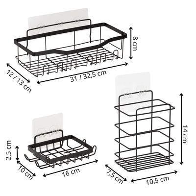 Praktická sada pěti koupelnových polic v matné černé barvě poskytne dostatek místa pro kosmetiku, drogerii i doplňky. Odolné provedení z nerezové oceli zaručuje dlouhou životnost a moderní vzhled. Součástí balení jsou samolepicí držáky, které umožňují snadnou montáž bez vrtání. Různé velikosti polic nabízejí flexibilní uspořádání a pomohou udržet koupelnu přehledně organizovanou.
