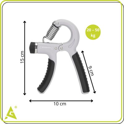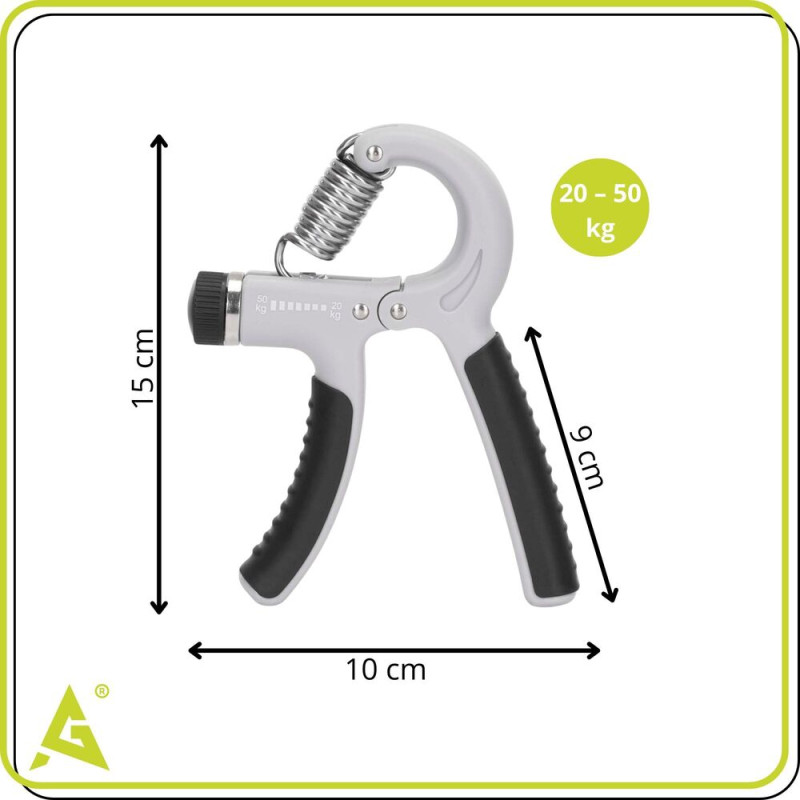 Posilovač rukou, zápěstí a předloktí. Nastavitelná síla odporu 20–50 kg. Protiskluzové rukojeti pro jistý úchop. Pohodlná velikost pro snadné držení. Vhodný jak pro silový trénink, tak pro rehabilitaci.