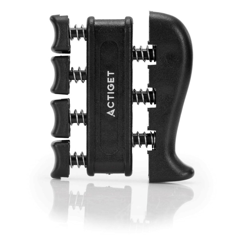 - Pružinový posilovač prstů umožňuje trénovat každý prst zvlášť, čímž se zvyšuje přesnost, koordinace a síla tlaku.