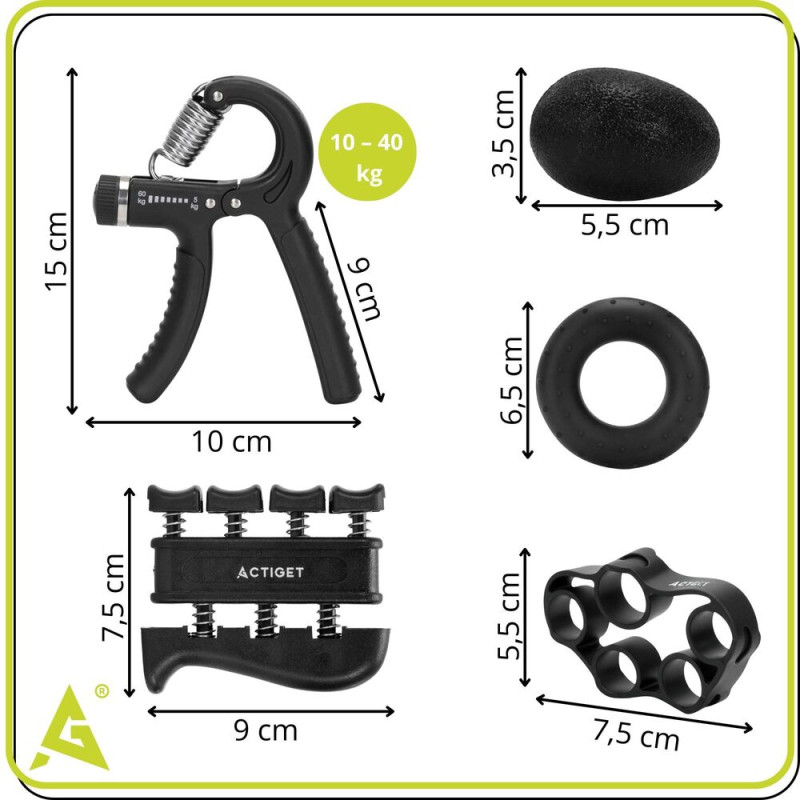 Tréninková sada 5 pomůcek ACTIGET ACT0055 je ideální volbou pro každého, kdo chce cíleně posilovat ruce. Sada je určena pro posílení úchopu, prstů a zápěstí a je vhodná jak pro sportovce, tak pro rehabilitaci i běžné domácí cvičení. Díky kombinaci různých typů pomůcek umožňuje komplexní trénink celé ruky, zlepšuje sílu, vytrvalost i koordinaci prstů a pomáhá předcházet přetížení. Jednotlivé prvky jsou kompaktní, snadno přenosné a součástí balení je také uložný vak se stahovací šňůrkou, díky kterému máte vše přehledně uložené a připravené k použití doma, v práci i na cestách.