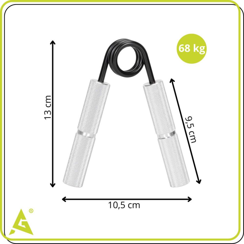 Pomůcka je vybavena ocelovou 34 mm pružinou, která zajišťuje stabilní a dlouhodobě spolehlivý odpor. Hliníkové protiskluzové rukojeti poskytují jistý a pohodlný úchop i při intenzivním cvičení. Díky kompaktní velikosti ji snadno vezmete s sebou kamkoli a můžete trénovat doma, v práci i na cestách.