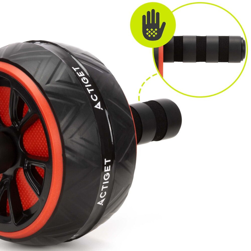 Kolečko je vybaveno ergonomickými rukojeťmi s pěnovým potahem, které zajišťují pohodlný a jistý úchop i při náročnějším cvičení. Gumový běhoun kolečka výrazně zvyšuje trakci a stabilitu na různých typech povrchů. Součástí balení je také ochranná podložka na kolena, která zvyšuje komfort při cvičení. Konstrukce s nosností až 100 kg zaručuje spolehlivost a bezpečné používání.