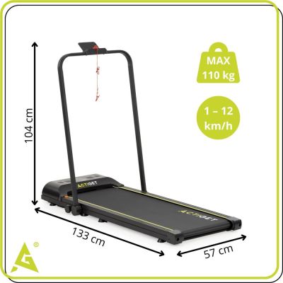 Běžecký pás ACTIGET ACTIRUN ACT0171 je moderní motorový běžecký pás určený pro pohodlné cvičení doma. Díky tichému chodu je vhodný i do bytu. Nabízí rychlost 1,0–12,0 km/h s jemným nastavením po 0,1 km/h a výkon motoru 1 HP, což umožňuje chůzi i běh podle kondice uživatele.
