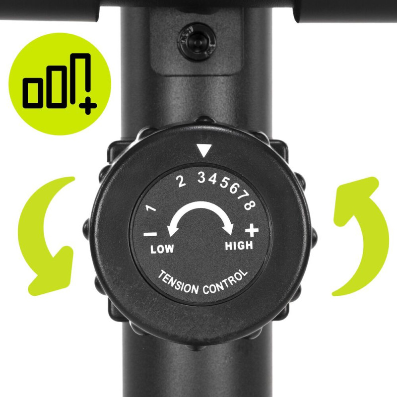 Model nabízí nastavitelná řídítka i sedlo, takže si polohu snadno upravíte podle své postavy. K dispozici je 8 stupňů odporu, které umožňují volit intenzitu tréninku od lehkého šlapání až po náročnější zátěž. O plynulý chod se stará setrvačník o hmotnosti 2 kg, který zajišťuje klidný a rovnoměrný pohyb bez cukání.