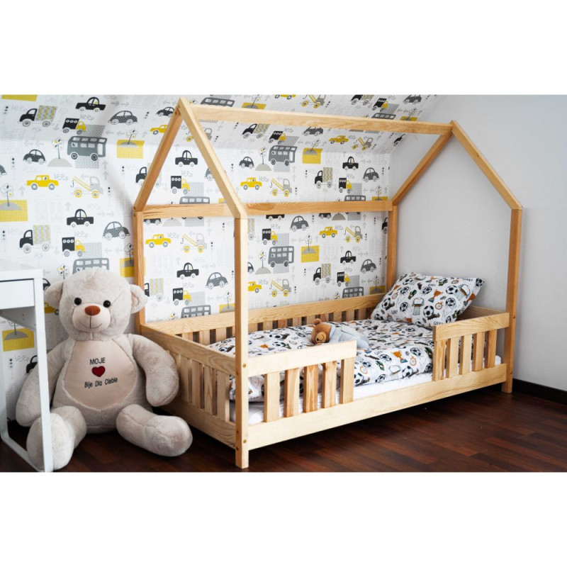 Dřevěná postel ve tvaru domečku poskytne bezpečné a útulné místo pro spánek i hraní. Díky stabilní konstrukci z precizně opracovaného borovicového dřeva je pevná a odolná. Ochranné zábradlí zajišťuje bezpečnost během spánku, zatímco možnost dozdobení světýlky či plyšáky vytváří příjemnou atmosféru. Součástí postele je pevný lamelový rošt, který poskytuje správnou oporu pro matraci. Rozměr lůžka 160×80 cm nabízí dostatek prostoru pro klidný spánek i odpočinek.