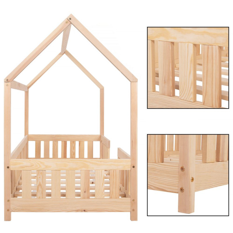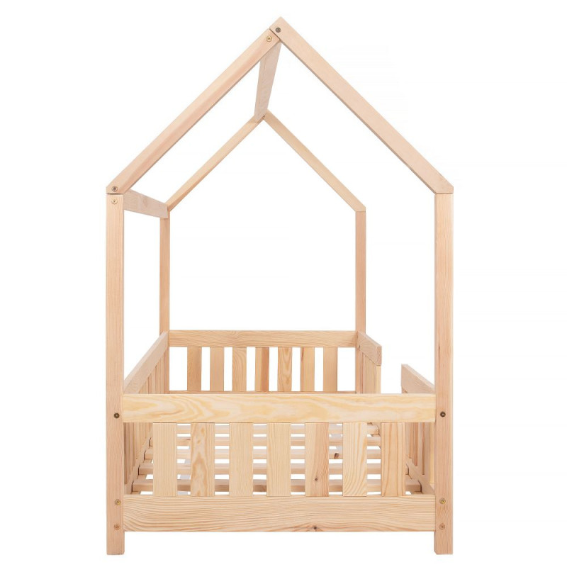 Stylová postel ve tvaru domečku DECHLAND KLÁRKA vytváří útulné a bezpečné místo pro spánek i hraní. Stabilní konstrukce z kvalitního borovicového dřeva zajišťuje pevnost a dlouhou životnost. Díky preciznímu opracování jsou hrany hladké a bezpečné pro děti. Ochranné zábradlí na bocích poskytuje maximální bezpečnost během spánku.