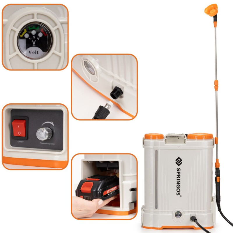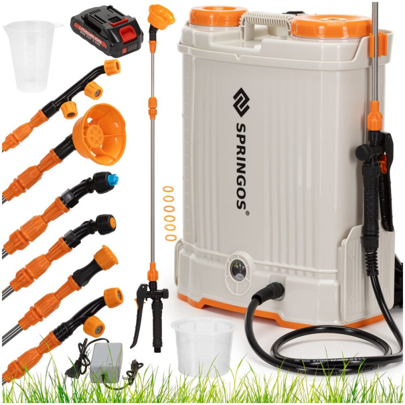 Zahradní akumulátorový postřikovač 16L SPRINGOS GA0255 nabízí komfortní a efektivní postřik bez námahy. Díky velkému objemu 16 litrů a bateriovému provozu je ideální pro delší práci na zahradě, ve skleníku i kolem domu.
