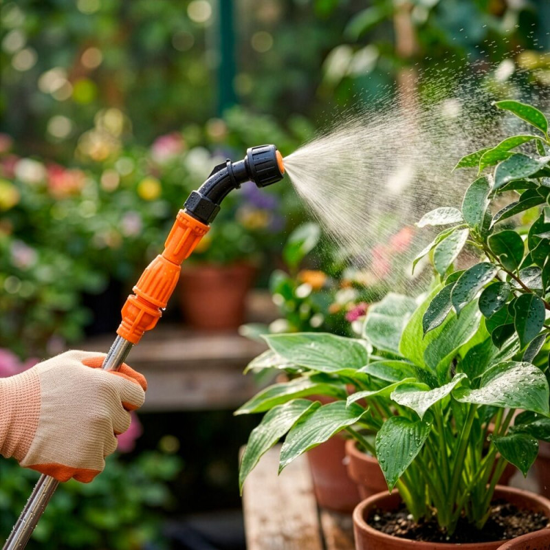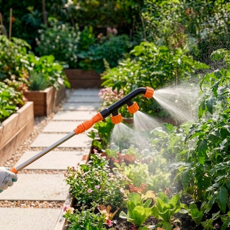 Akumulátorový postřikovač pro péči o zahradu a rostliny. Slouží k pohodlné aplikaci vody, hnojiv i postřiků bez nutnosti ručního pumpování.