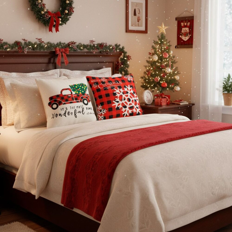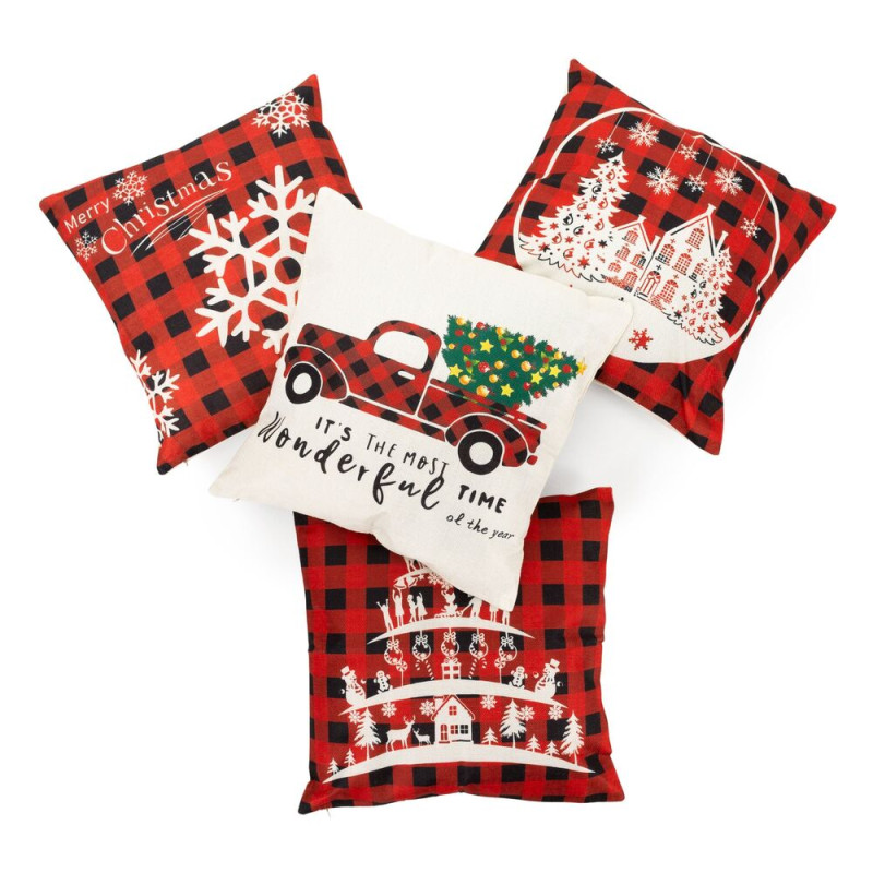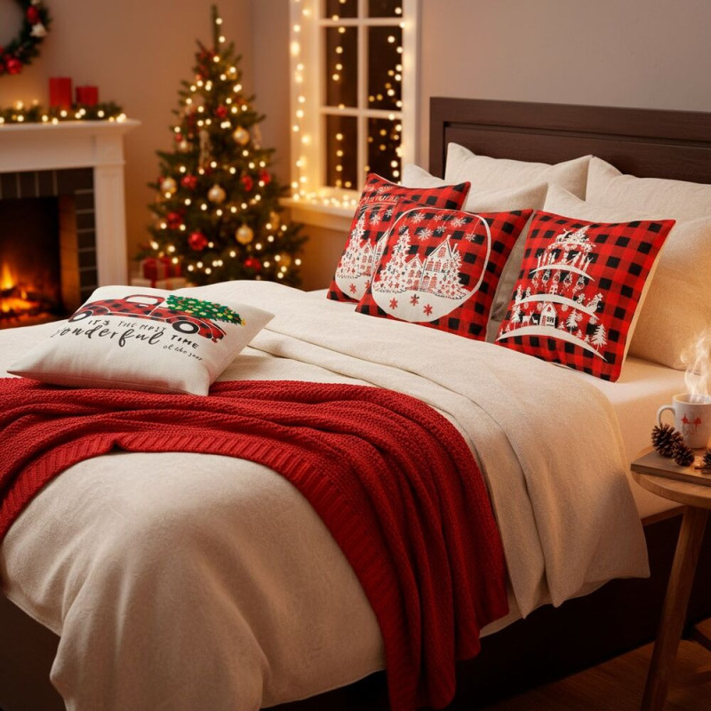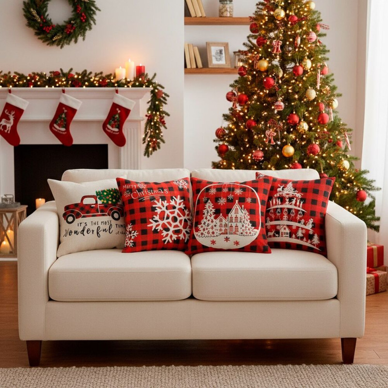 Stylové povlaky s vánočními motivy promění každý interiér v útulné sváteční místo. Jsou vyrobené z měkkého polyesteru, mají praktické zapínání na zip a snadno se udržují. Červeno-bílé vzory s černými akcenty dodají domovu hřejivou atmosféru.