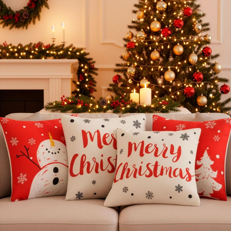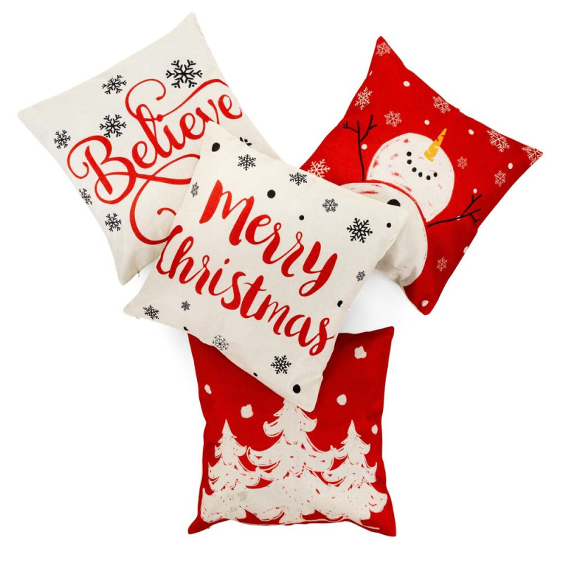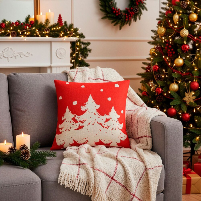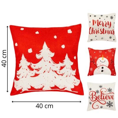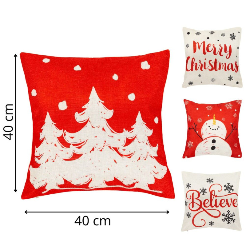 Vánoční povlaky na polštářky červeno-bílé vytvoří v domácnosti příjemnou sváteční atmosféru díky veselým motivům zasněžených stromků, sněhuláka a typickým vánočním nápisům. Kombinace červené, bílé a černé barvy působí hřejivě a dokonale zapadá do tradiční i moderní vánoční výzdoby. Povlaky jsou vyrobené z kvalitního 100% polyesteru, který je měkký, odolný a snadno se udržuje, což je ideální pro každodenní používání během zimních svátků. Výrazné vánoční motivy okamžitě rozzáří interiér a dodají mu kouzelnou atmosféru.