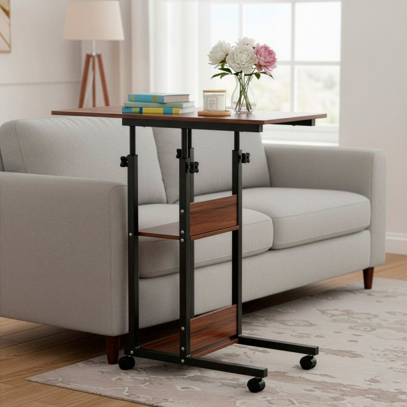 Hlavní výhodou jsou otočná kolečka s aretací, která umožňují snadné přesouvání a zároveň bezpečné zastavení na místě. Výškově nastavitelné provedení v rozmezí 76–86 cm poskytuje flexibilitu přizpůsobení podle potřeby — při práci, prezentaci i pohodlném odložení věcí vedle pohovky či postele. Výrazná úspora času bez montáže, mobilita a možnost okamžité změny umístění z něj dělají ideální řešení zejména do menších i multifunkčních prostor, kde záleží na každém centimetru.