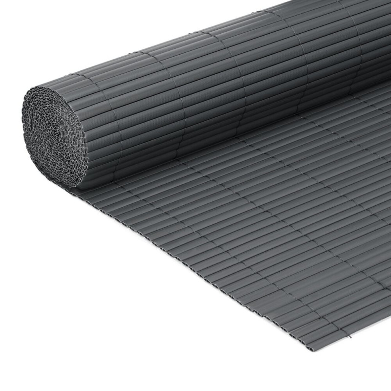PVC zástěna 160x500 cm na balkon plot SPRINGOS GA0239 šedá je praktické a elegantní řešení pro oddělení prostoru na balkoně, terase nebo u plotu. Díky dekoru umělého bambusu působí velmi esteticky a zároveň poskytuje účinnou ochranu před zraky sousedů. Pevně přiléhající lamely pomáhají vytvořit více soukromí a příjemnější prostředí pro každodenní odpočinek.