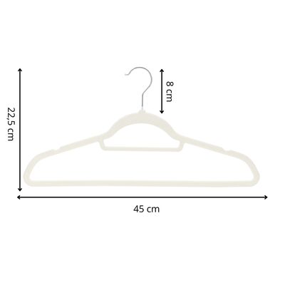 Elegantní sada 20 béžových ramínek se sametovým povrchem zajistí, že oblečení zůstane vždy na svém místě bez sklouzávání. Jemný povrch chrání látky a zvyšuje přilnavost, zatímco štíhlý tvar šetří místo ve skříni. Kovový háček umožňuje snadné zavěšení a celková délka 45 cm je ideální pro šaty, košile i saka. Stylové, lehké a praktické řešení pro přehlednou organizaci šatníku.