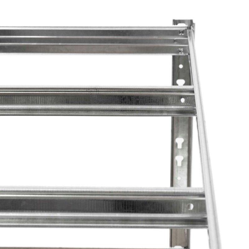 Pozinkované provedení odolné proti korozi garantuje dlouhou životnost i ve vlhkém prostředí. Rychlá a snadná montáž šetří čas při sestavení. Plastové patky chrání podlahu před poškozením. Velkou výhodou je možnost rozdělení na dva menší regály nebo sestavení jako dílenský ponk, takže úložný prostor snadno přizpůsobíte konkrétním potřebám.