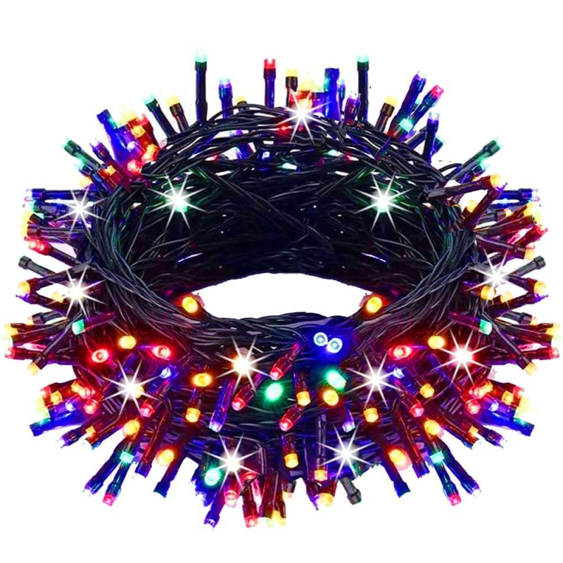 LED světelný řetěz se záblesky vhodný pro vnitřní i venkovní použití. Úsporné led diody, voděodolné provedení, krytí IP44. Délka světelné části 80 m, napájecí kabel 1,5 m. Barva multicolor + záblesky studená bílá, 1000 led.