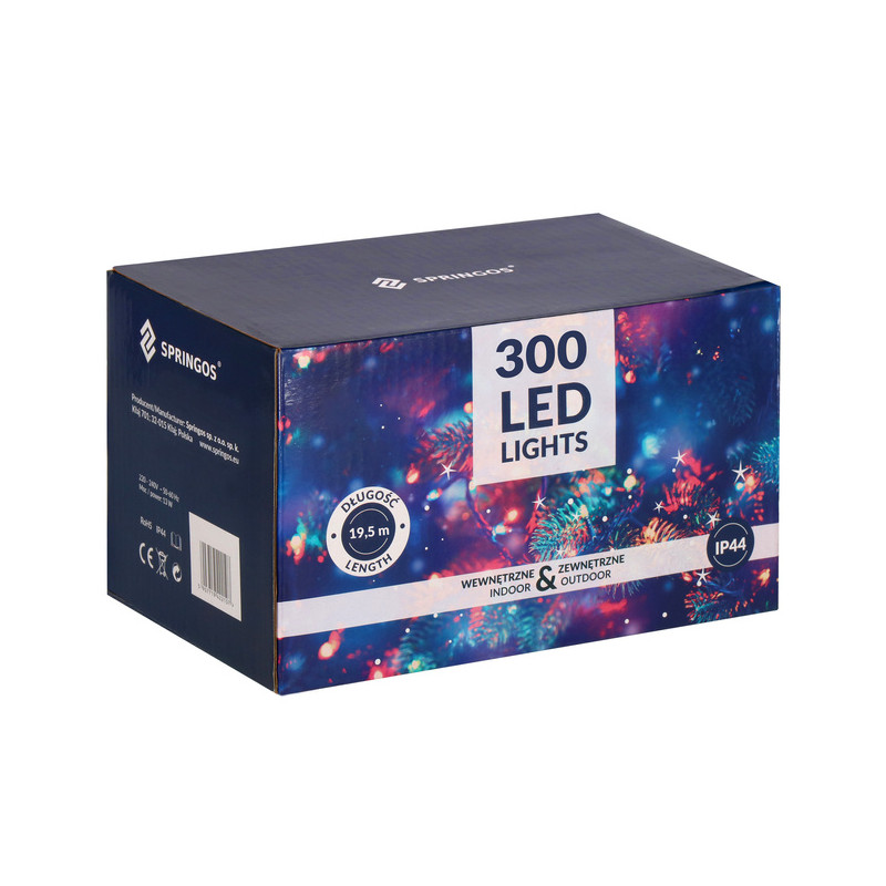 LED světelný řetěz vhodný pro vnitřní i venkovní použití. Úsporné led diody, voděodolné provedení, krytí IP44. Délka světelné části 24 m, napájecí kabel 1,5m. Barva multicolor, 300 led.