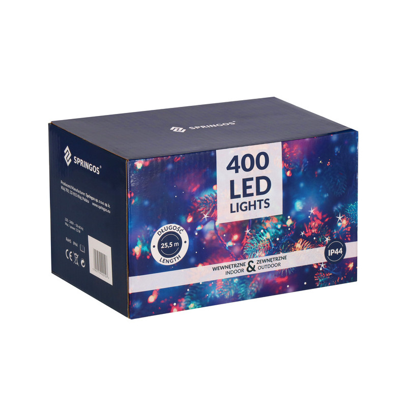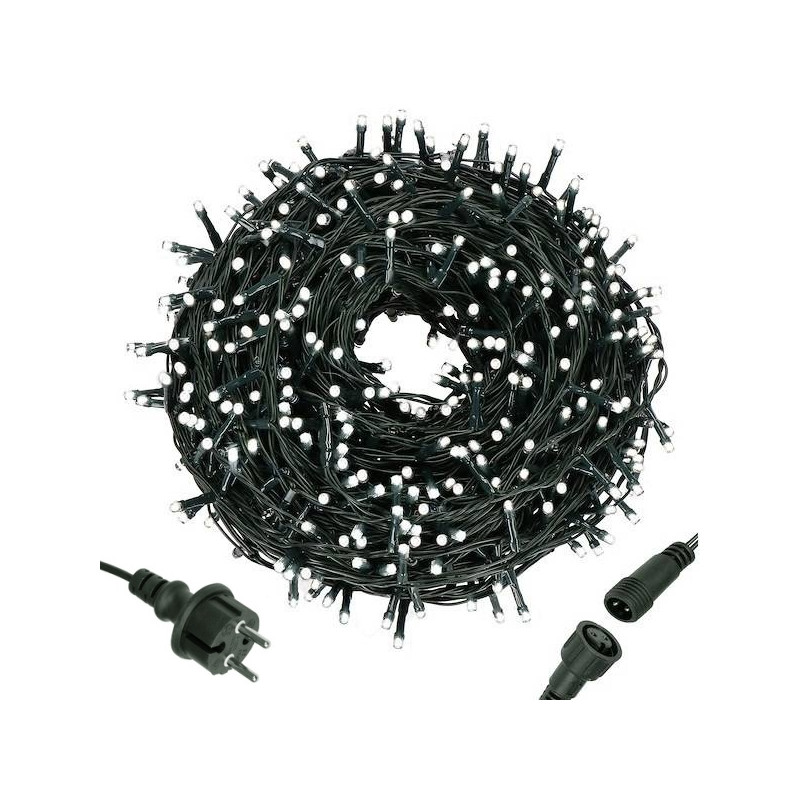 LED světelný řetěz vhodný pro vnitřní i venkovní použití. Úsporné led diody, voděodolné provedení, krytí IP44. Délka světelné části 32 m, napájecí kabel 1,5m. Barva studená bílá, 400 led.