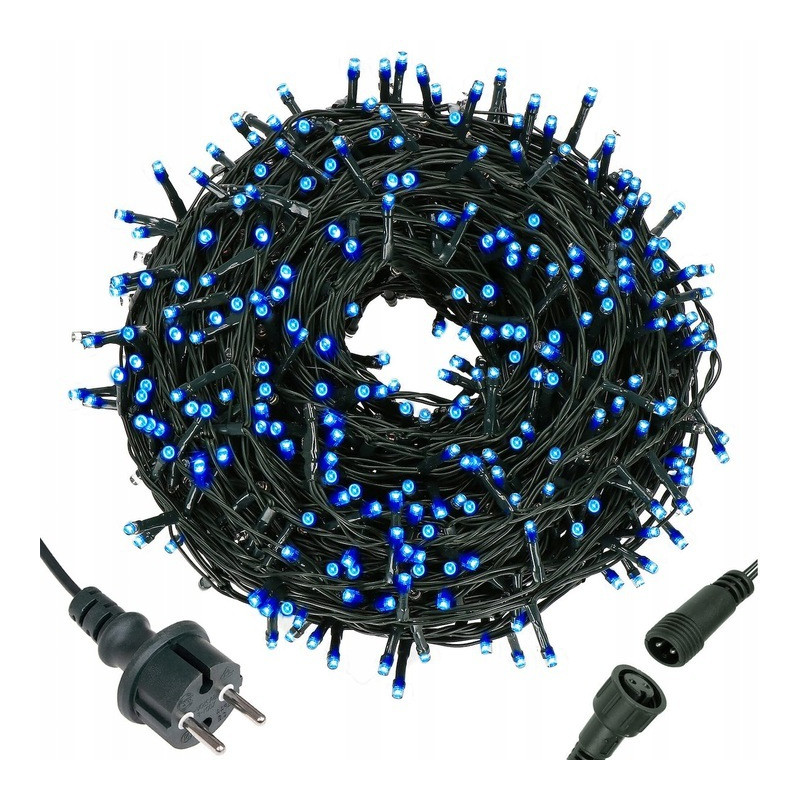 LED světelný řetěz vhodný pro vnitřní i venkovní použití. Úsporné led diody, voděodolné provedení, krytí IP44. Délka světelné části 40 m, napájecí kabel 1,5m. Barva modrá, 300 led.