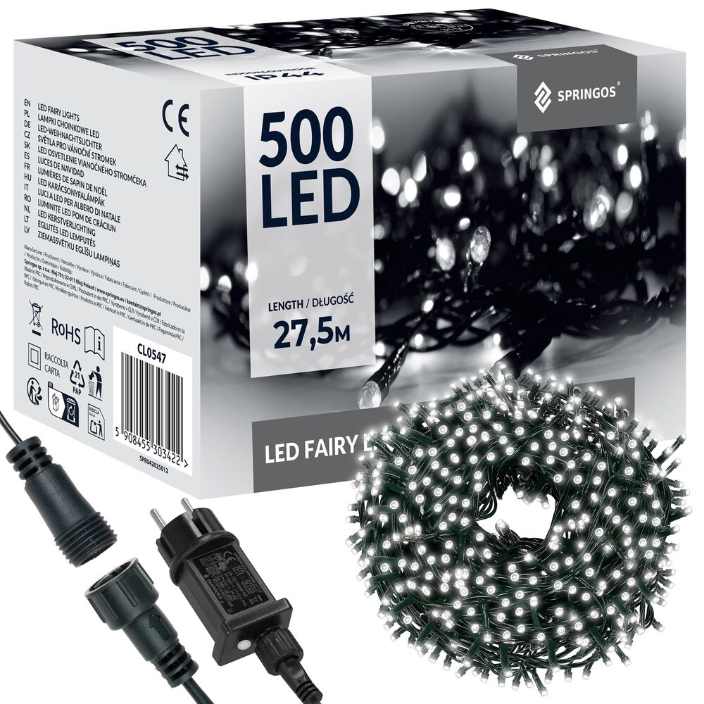 LED světelný řetěz pro vánoční osvětlení. Adaptér na bezpečné napětí, 8 světelných funkcí, paměť na poslední režim. Ultra úsporné mikro diody, venkovní i vnitřní použití, certifikace CE, RoHs, IP44. Délka světelné části 25 m, napájecí kabel 2,5 m. Barva studená bílá, 500 LED.