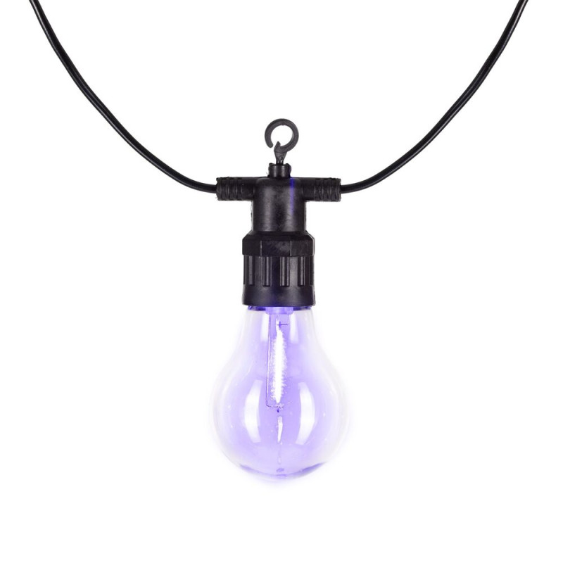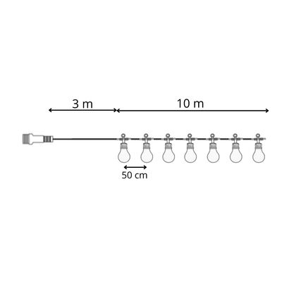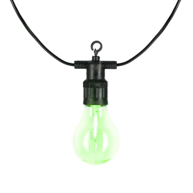 Dekorativní LED světelný řetěz s barevnými baňkami. Slouží k vytvoření příjemné atmosféry na zahradě, terase i v interiéru. Ideální pro výzdobu během Vánoc, oslav nebo večerního posezení. Odolné provedení vhodné pro vnitřní i venkovní použití.