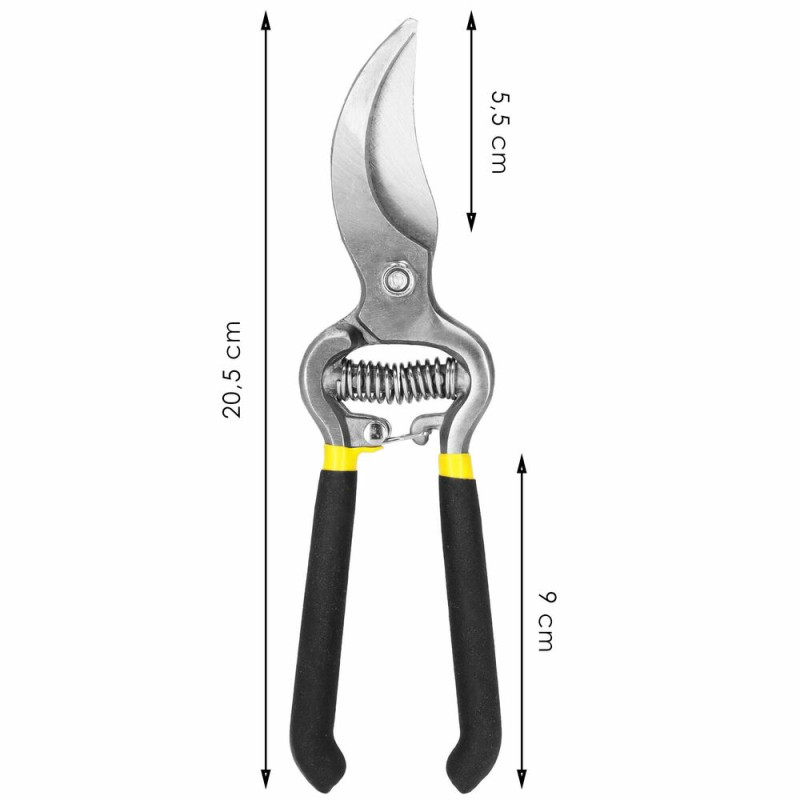 Univerzální nůžky na zahradu s bezpečnostním zámkem čepele. Vyrobeno z pevných a odolných materiálů. Přesný řez díky precizně broušeným nožům. Ergonomická rukojeť s protiskluzovou vrstvou. Kompaktní velikost. Ideální nástroj na zahradu pokud jde o zastřihování nebo modelování.