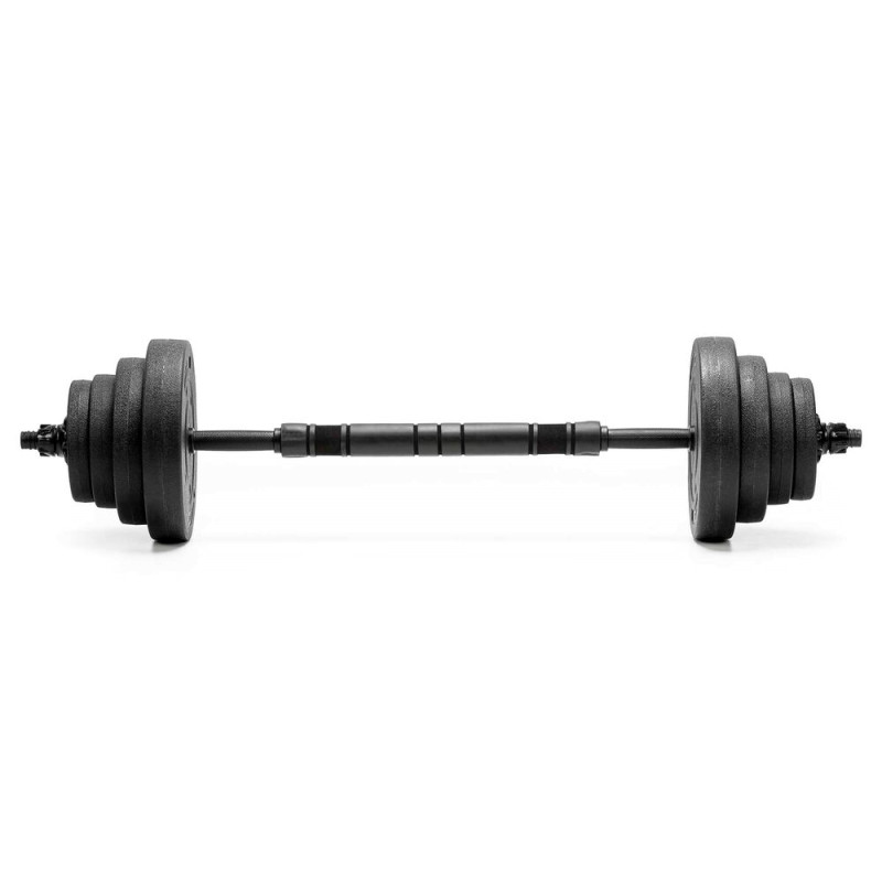 Konstrukce setu je navržena pro pravidelné zatížení a dlouhodobé používání. Materiály jsou odolné proti opotřebení a vhodné pro domácí i klubové prostředí. Celková hmotnost 30 kg poskytuje dostatečný rozsah pro začátečníky i pokročilé. Díky chytrému systému sestavení je set skladný a ideální i do menších prostor.