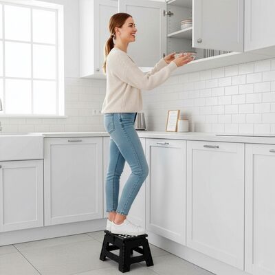 Skládací stolička SPRINGOS HA7567 černá je praktickým pomocníkem do každé domácnosti, kuchyně, dílny i kanceláře. Díky pevné konstrukci z odolného PP materiálu nabízí vysokou nosnost až 150 kg, takže je vhodná pro dospělé i děti. Protiskluzové nožičky zajišťují stabilitu a bezpečné používání i na hladkých površích, zatímco kompaktní výška umožňuje pohodlné dosáhnutí do vyšších míst.