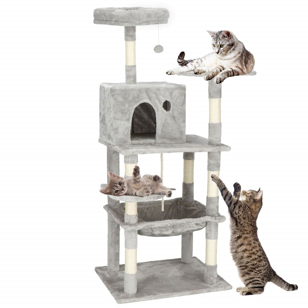 Skvěle vybavené víceúrovňové kočičí škrabadlo s šesti patry. Nabízí stabilní a odolnou konstrukci, sisalové tyče, příjemný sametový potah, útulný domeček s okénkem, závěsné houpací křeslo, kruhovou postel na vrcholu a hračky pro zábavu. Ideální pro hraní, šplhání a odpočinek.