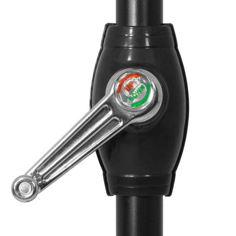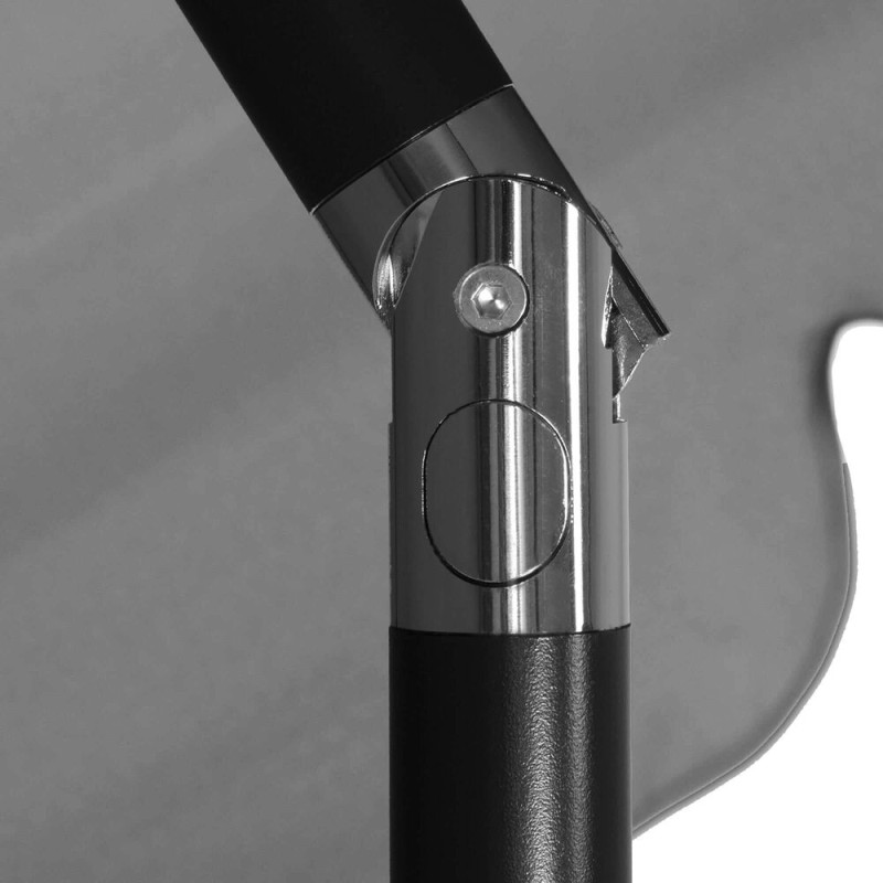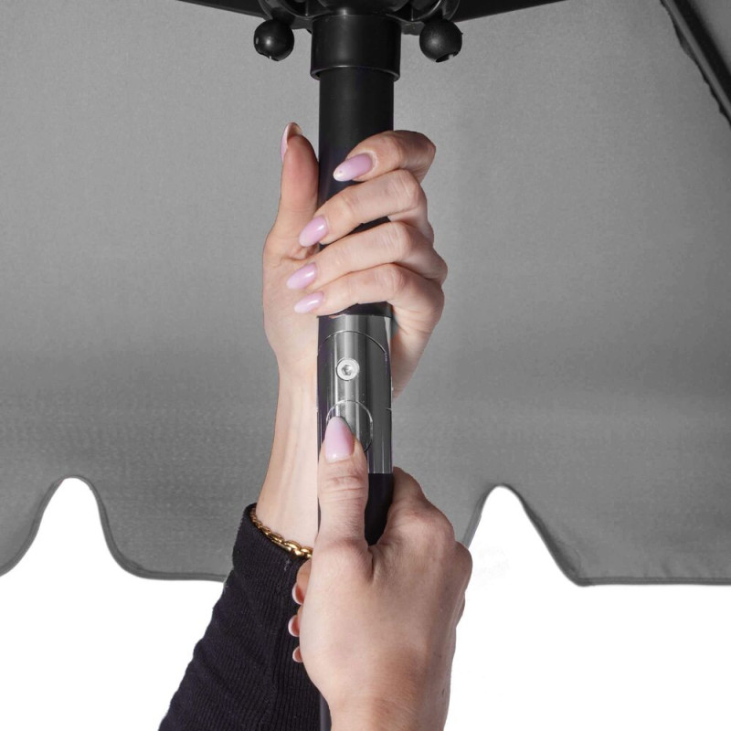 Kvalitní materiál zajišťuje odolnost vůči vodě, UV záření a dalším povětrnostním vlivům, což garantuje dlouhou životnost i při venkovním použití. Ventilační otvory ve vrchní části zajišťují lepší proudění vzduchu a snižují hromadění tepla pod slunečníkem. Estetickým doplňkem jsou efektní volánky, které dodávají slunečníku stylový vzhled a zároveň chrání před ostrým světlem ze stran.